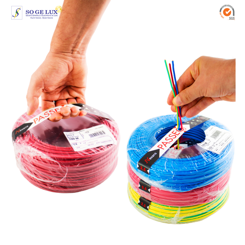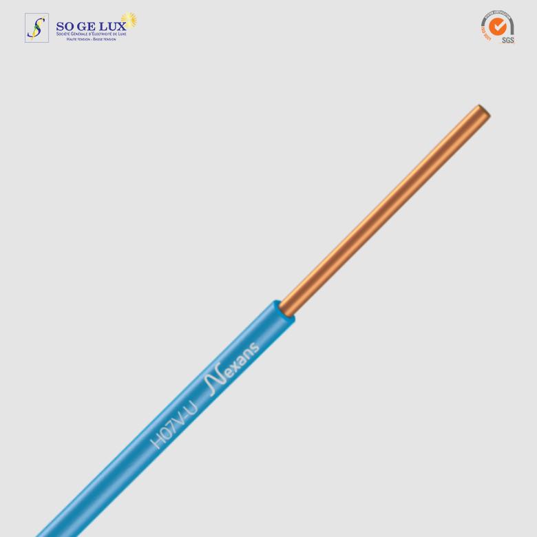 - ce fil électrique rigide est constitué d’une âme de cuivre nu classe 1 et possède une isolation en PVC