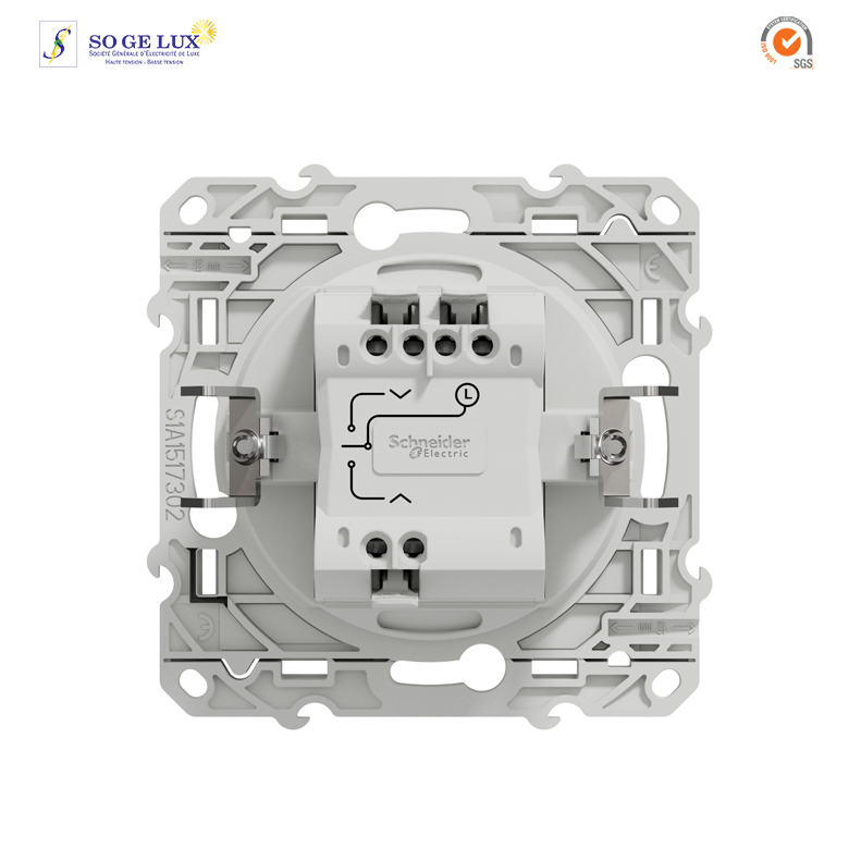 Pour satisfaire des clients toujours plus soucieux de la décoration intérieure, Schneider Electric a pensé à des gammes complètes de prises et interrupteurs soignés qui s’adaptent à tous les besoins et toutes les envies La gamme Odace reflète ce souci de l’élégance et du raffinement Sobre et distingué, cet interrupteur volet roulant blanc dispose de 3 boutons permettant 3 positions différentes : montée, descente et stop au milieu Pratique et intuitif, cet interrupteur encastré se fixe en toute simplicité par vis Encastré, ce va-et-vient 3 boutons permet le verrouillage mécanique et électrique entre haut et bas Cette commande pour volets roulants est conçue en toute robustesse pour résister aux UV et aux chocs et ainsi garantir sa fiabilité à long terme Optez pour une gamme sobre et élégante que vos clients pourront compléter d’une plaque de finition adaptée à leurs envies et à leur créativité