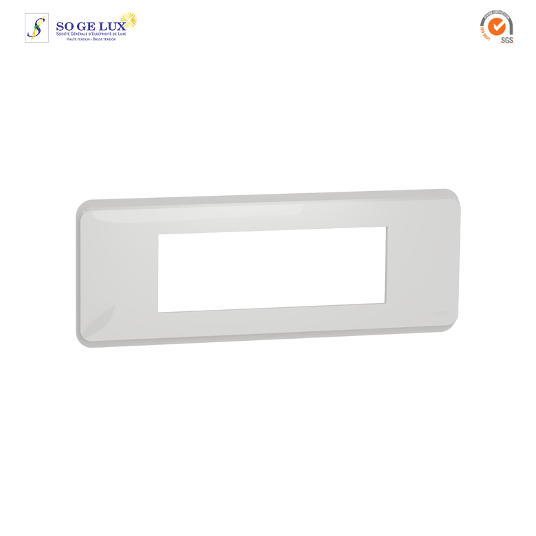 NU411618 se compose d’une plaque 6 modules de couleur blanc. Il sera à associer et à clipser sur un support de fixation (commençant par NU700) qui maintient le mécanisme ou la fonction Unica (prise, interrupteur, …).